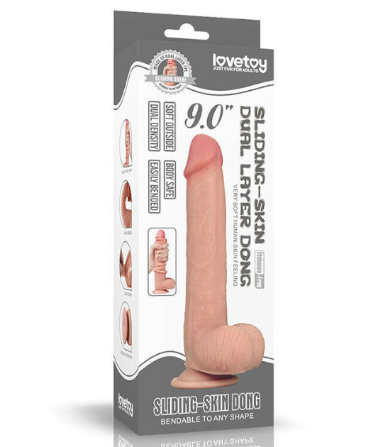 Dương vật giả Lovetoy 9 Inch - 23cm x 4,2cm hàng chính hãng, chất lượng cao, với công nghệ da trượt thú vị. Dương vật giả này được chế tạo thủ công để đảm bảo tính chân thực, có thể dễ dàng uốn cong theo nhu cầu.