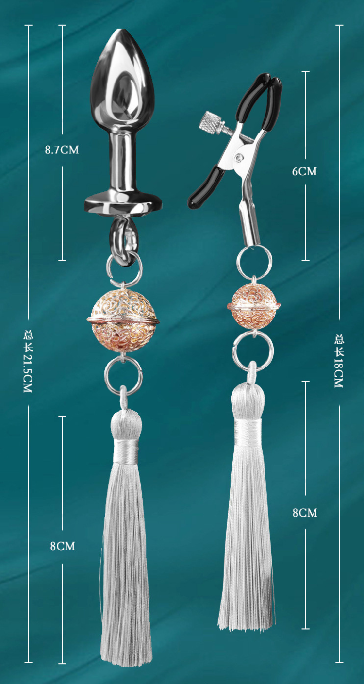 Bộ kẹp vú và phích cắm inox có chuông vui nhộn là bộ đồ chơi bạo dâm dành cho những cặp đôi yêu thích cuộc yêu theo kiểu BDSM và thích được kích thích nơi vùng ngực, hậu môn. Bộ kẹp vú và phích cắm inox được làm từ chất liệu kim loại cao cấp không gỉ, mang đến sự an toàn tuyệt đối cho người sử dụng. Nếu bạn đang tìm kiếm một làn gió mới để thay đổi không khí phòng the trở nên táo bạo hơn thì sản phẩm này là một lựa chọn tuyệt vời.