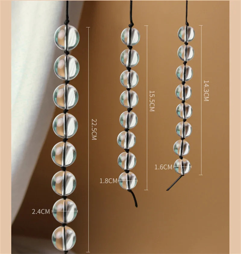Các hạt bi này đều là thủy tinh trong suốt trơn bóng giúp bạn đút vào hậu môn một cách dễ dàng. Tạo cảm giác sung sướng khi nó ma sát, kích thích tận sâu bên trong lỗ nhị.