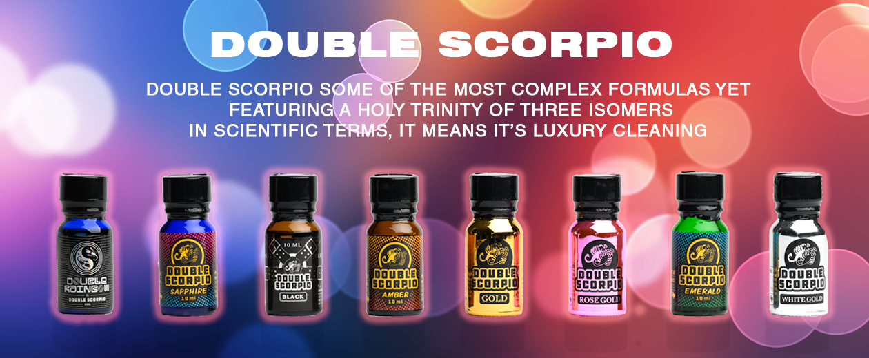 Double Scorpio Black Poppers dành cho các tính đồ yêu thích các sản phẩm được sản xuất bằng da, và bạn đã sẵn sàng cho chuyến đi của cuộc đời mình. Sự pha trộn hấp dẫn giữa mùi da và thuốc lá này sẽ có trong bộ sưu tập yêu thích của bạn. Đây là một sự pha trộn hoàn hảo cho những người cuồng dâm, những cô gái cá tính mạnh mẽ và những người đồng tính ở khắp mọi nơi.