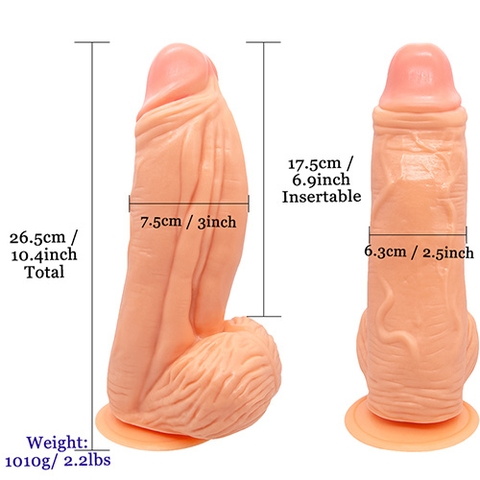 Dương vật giả size khủng 26,5cm x 7,5cm được làm từ chất liệu PVC cao cấp, đảm bảo sự mềm mại, mịn màng và độ đàn hồi cao. Chất liệu này cũng là một trong những chất liệu an toàn và lành tính, nhở sự mềm mại cao nên hoàn toàn không gây tổn thương cho những vùng nhạy cảm như âm đạo hoặc hậu môn. Ngoài ra, chất liệu này còn có khả năng chống thấm nước, giúp người dùng dễ dàng trong việc vệ sinh sản phẩm hơn. Không những thế, các chi tiết như gân guốc được mô phỏng tỉ mỉ, tạo ra cảm giác rất thực khi sử dụng dương vật giả to khủng này. Những đường gân này còn có chức năng tạo sự ma sát khi xâm nhập vào âm đạo hoặc hậu môn, khiến người dùng vô cùng sung sướng. Ngoài ra, nhờ chất liệu PVC có độ đàn hồi và mềm mại nhất định, nên có thể mô phỏng độ cứng và mềm của dương vật thật, đảm bảo sự thoải mái và dễ chịu nhất cho người dùng.