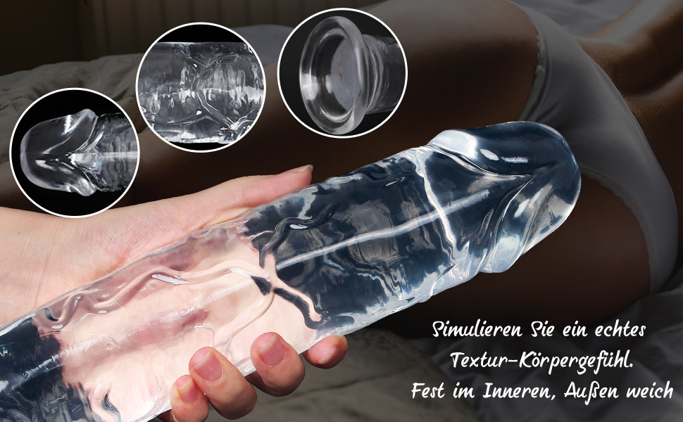 Dương vật giả trong suốt dẻo dai với vẻ ngoài chân thực và cảm giác sâu rộng: Đây chắc chắn là một chiếc toy cho âm đạo, hậu môn size khủng: Tổng chiều dài 32 cm; chiều dài sử dụng được là 29cm; đường kính 6 cm. Trong suốt như pha lê, như thể được làm bằng thủy tinh trong suốt, hình ảnh sống động của đầu khấc, đường gân sống động trên thân như thật khiến rạo rực hơn bao giờ hết.