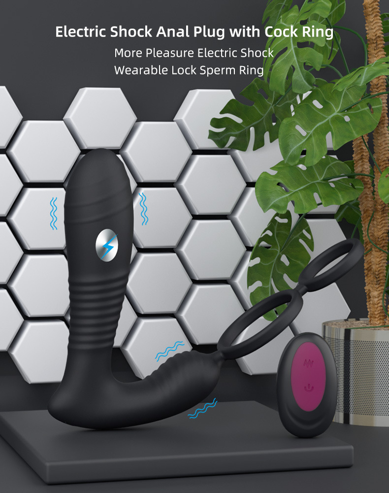 [Plug rung sốc điện mát xa tuyến tiền liệt nam 3 trong 1] Máy mát xa có sốc điện có vòng dương vật 8 kiểu rung thay đổi với điều khiển từ xa không dây. Đồ chơi tình dục người lớn mạnh bạo sốc điện nhiều tần số.