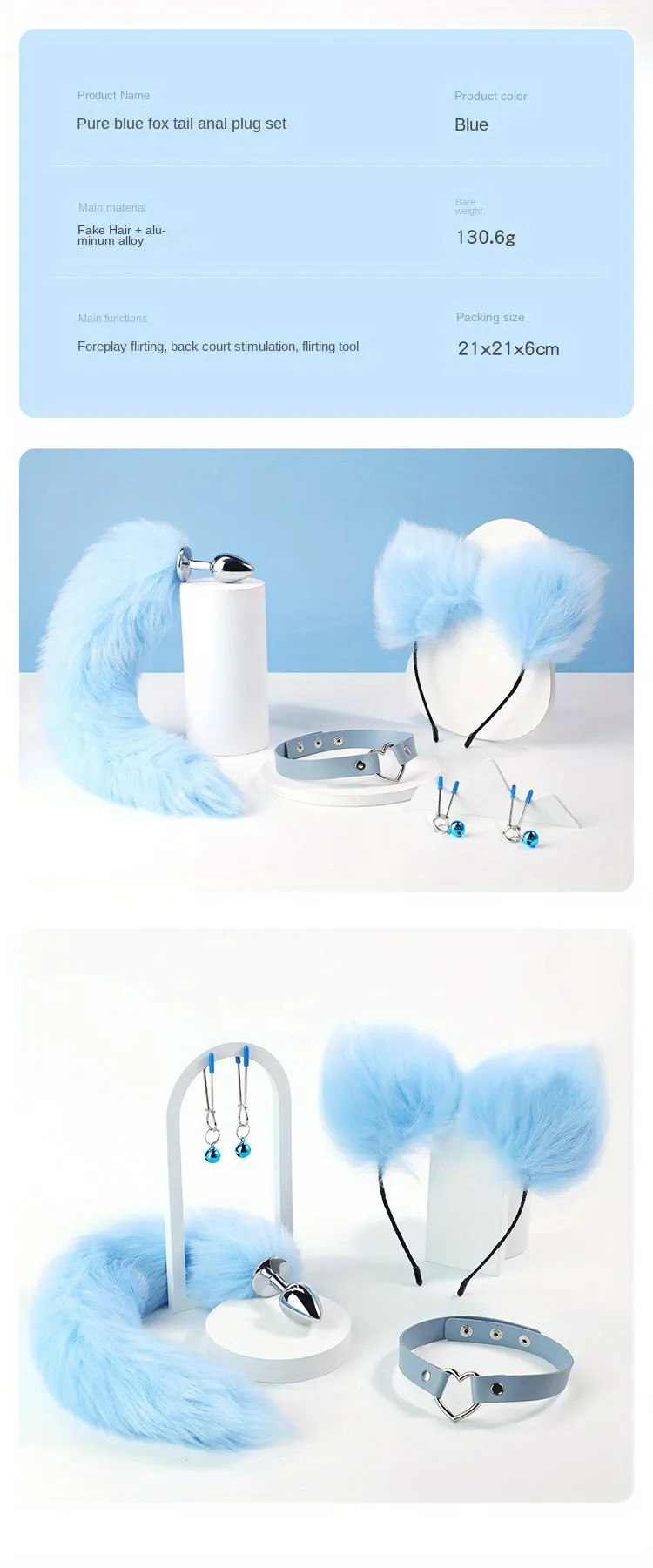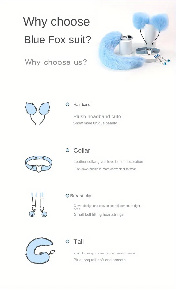 Nhắm mắt và liên tưởng một hôm bận bịu ở công ty và mệt nhọc bước vào phòng, thấy người tình hóa thân thành nàng cáo xanh đầy khêu gợi, nằm trên chiếc giường vs cơ thể đầy ướt át chờ bạn làm tình thì cảm giác sẽ thế nào nhỉ, chắc chắn là chỉ muốn vồ tới mà chiếm lấy em ấy mà thôi, vì quá kích thích quá quyến rũ, bạn sẽ không thể nào kiềm chế được với sự kích thích đó. Set 4 món cosplay hóa thân nàng cáo xanh chính hãng MizzZee thuộc nhóm đồ chơi bạo dâm cũng là một quà tặng thú vị cho người yêu, giúp cuộc hoang lạc sắp tới thêm ấn tượng và khó quên.