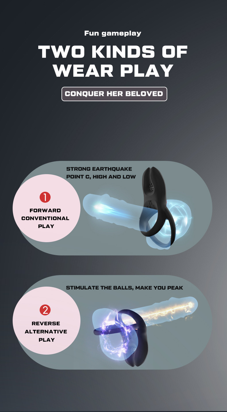 Vòng khóa dương vật, kẹp vú D-max có rung sở hữu thiết kế độc đáo với 2 vòng đeo, một vòng tròng vào gốc dương vật và vòng còn lại tròng vào bìu. Cấu trúc này giúp tăng cường khả năng bế tinh, hỗ trợ nam giới kiểm soát và trì hoãn quá trình xuất tinh lâu hơn. Đặc biệt, thiết kế 2 vòng còn giúp sản phẩm được cố định chắc chắn, không bị xê dịch trong lúc quan hệ, mang lại cảm giác an tâm và tập trung vào khoái cảm.